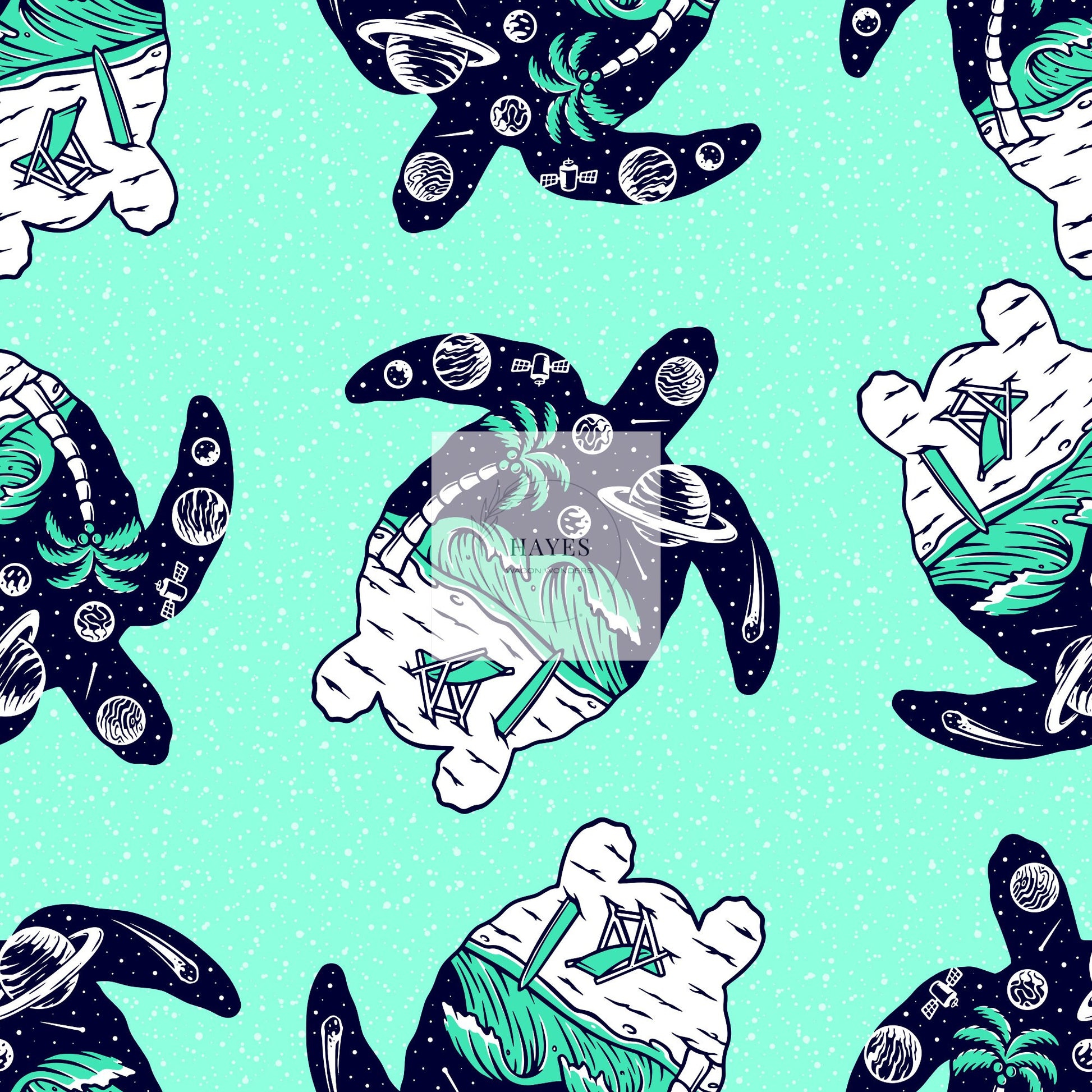 Sea Foam Turtle Smiley UPF 50+ Sun Protection, Custom Fabric, Wonderfold/Joymor/Rainbow Baby Canopy